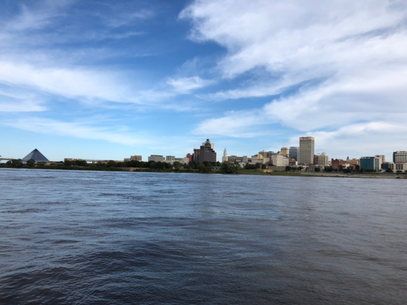 Вид на город Мемфис с правого берега реки Миссисипи. Даунтаун.