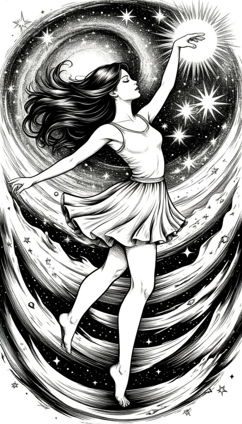 Я нитью нежно сотворяюВо всей галактике лучи,Чтоб расцветали, как цветки,Тебя я ими украшаюОт всей незыблемой души,Чтоб все мои чудные нитиСоздали нам же мир большой,Как вкус галактики святой,Как сладость дивного граффити.Я сладость дивную вкусил,Я нитью нежно сотворилЛучи небесного простора,Как чувства искренних чудесВсему вокруг в противовес,Где лик небесного танцораЖелает нас с тобой зажечь,Как нити доброго узора,Чтоб нас к созвездиям привлечь.С тобой нас звезды завлекают,К танцорам неба приглашают,Что звезды все вокруг творят,Как весь небесный аромат,Где нити звезд воспламеняютТвой очень весь блаженный лик,С него слеза теперь спадаетИ в звезды яркие играет,Как будто в клумбу земляник,Он их за звезды принимает,Как друг танцора, мой шутник.