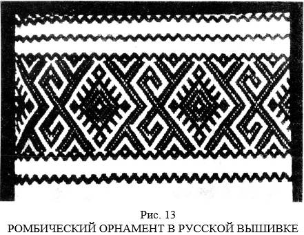 Долгое время для исследователей оставалось загадкой закономерность ромбического орнамента исторических артефактов, которая к тому же была распространена у всех народов мира. «Такую повсеместность никак нельзя объяснить легкостью изображения именно ромбической фигуры; обычный квадрат, тоже широко распространенный в народной орнаментике, несравненно проще и легче для воспроизведения, но из тысячелетия в тысячелетие разные народы в разных частях Старого Света с неуклонным упорством изображали ромбы, создавали сплошной ковровый узор из ромбов или рисовали символы плодородия, в основе которых очень часто был ромб»10.