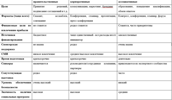 Существует три основных блока активностей в рамках практически любого делового мероприятия: деловая программа; нетворкинг и коммуникации; демонстрационные элементы и экспозиция. На конгрессах и конференциях в приоритете деловая программа, на выставках – экспозиция, на совещаниях и презентациях – нетворкинг и коммуникации.