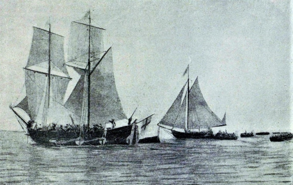 Захват шведского бота «Гедан». Старинная гравюра 18 века.