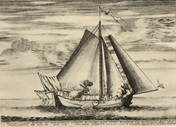 Шведский бот «Эсперн». Старинная гравюра 18 века.