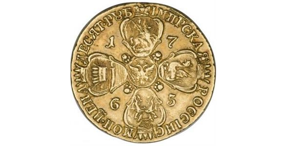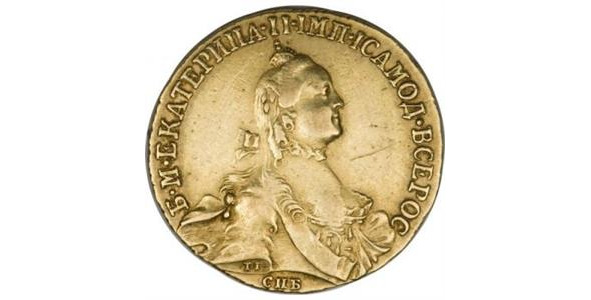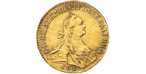 Выше опубликован «золотой червонец» Императрицы Екатерины (вес 3.47 грамма 928 пробы), который сейчас у нумизматов стоит 380000 рублей. Он тем ценен, что перечеканивался из монет Петра III и является очень редким экземпляром.