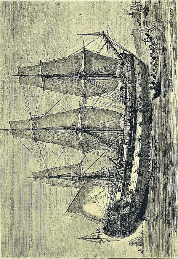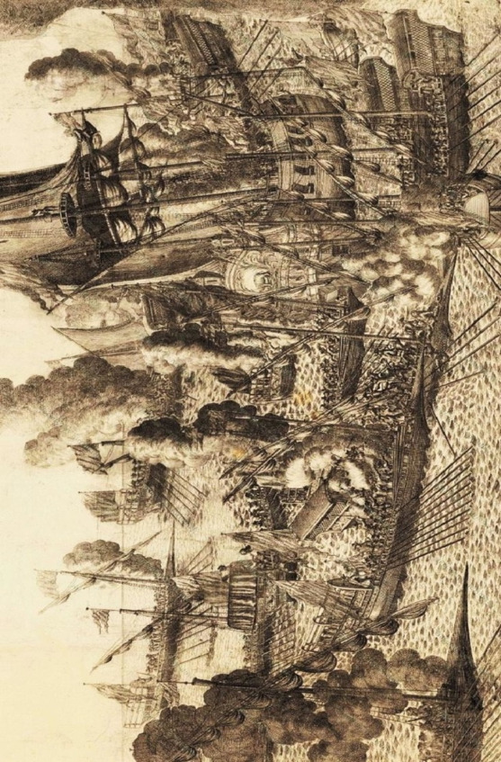 Гангутское сражение. Старинная гравюра. Художник А. Ф. Зубов