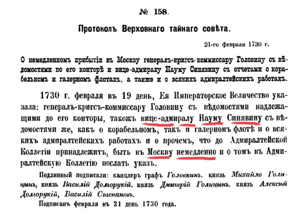 Другой документ Рассуждение Н. А. Синявина о принципах содержания флота (№126 записано 16 марта 1732 года. РГАДА ф.248. кн.1083. л 471—474).