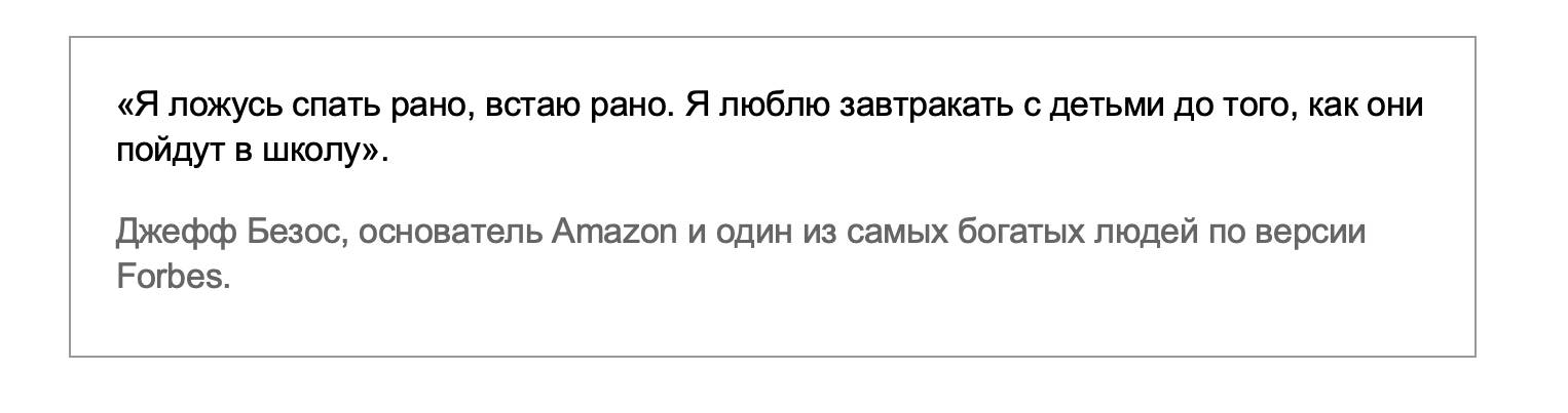 Джефф Безос спит не менее восьми часов и не любит многозадачность, считая, что она вредит процессам и снижает эффективность. А если он тратит время на личные дела, например, проводит время с семьей, то не отвлекается на почту и переговоры.