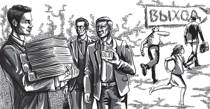 В офисе начался кипиш, все засуетились. Конструкторы, которые были на совещании, разом ломанулись к черному ходу, который был заставлен всяким хламом и не применялся по назначению, наверное, со времен царской власти. Они вмиг расчистили проход и начали исчезать в дверном проеме. Павел не знал, что в этом случае необходимо делать, ведь никто не предупреждал его о подобных мероприятиях. Он спокойно выключил компьютер и, допив кофе, пошел к черному ходу, куда его коллеги-«злодеи» пытались скрыться от облавы. Проходя мимо кабинета договорников, притормозил – его заприметила Ленка, которая там трудилась, и, крикнув: «Павел, помоги мне!», бросила ему в руки три здоровые папки с документами, даже не дав Павлу опомниться и переварить абсурд происходящего, ведь в договорном отделе хранятся тупо договоры.