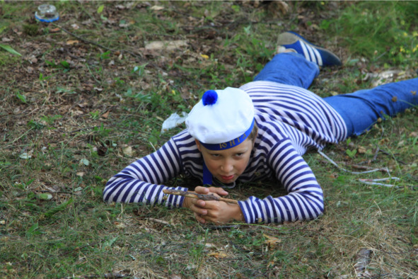 По дороге нам попалась сосна с кривым стволом и множеством веток, торчащих так, что можно было на неё залезть. Супруга стала рассказывать, как они в детстве лазали по деревьям, я дополнил рассказ из своего детства. Пока мы разговаривали, супруга залезла на дерево на высоту метра 4—5 и стала звать к себе внука, а я фотографировал Любимую, сидевшую на дереве как Соловей-Разбойник – чувствовалось, что она была счастлива, как в детстве. Внук сказал: