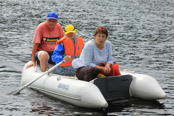 Детей покатали на байдарке. У каждого было весло, но грести получалось не у всех.