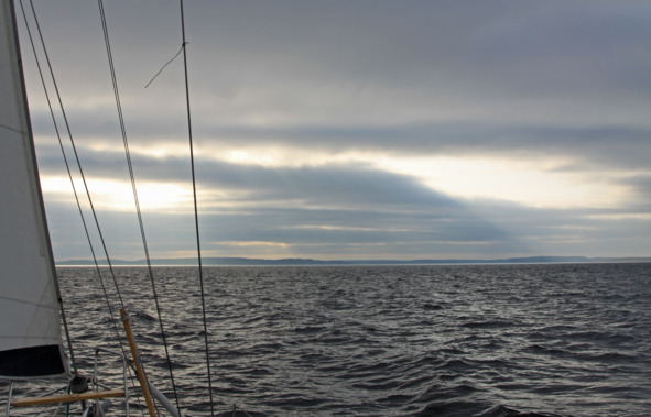Мы стоим в бухте и чистим перышки, а на Ладоге вдувает под 15 м/с, а по прогнозу только 3—5 м/с. Мимо нас по небу проплывает крупная кучёвка, она все ниже и ниже, все темнее и темнее, скоро прольется дождем. Задувает не по-детски, в кокпите на пригреве тепло, хулиганки-чайки кружат над нами и норовят схватить хлеб, разложенный для просушки. Боцман: