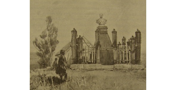 Памятник Александру II на месте его встречи с делегацией горских старейшин около станицы Царской (ныне станица Новосвободная). Литография XIX в.