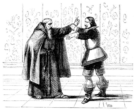 – Ваше покровительство! – воскликнул монах, отступая на два шага. Горделиво опираясь на правую ногу и подбоченившись правой рукой, он поднял левую и, вытянув указательный палец в сторону дона Родриго, вперил в него свой разгневанный взор. – Ваше покровительство! Хорошо, что вы так заговорили, что вы сделали мне подобное предложение. Вы переполнили чашу, и я больше не боюсь вас.