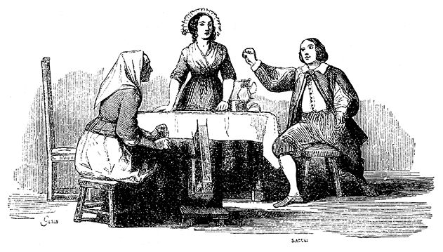Пришли в деревенскую остерию; уселись совсем вольготно, в полнейшем одиночестве, ибо нищета отвадила всех обычных посетителей этого приюта всяческих радостей; заказали то немногое, что там нашлось; распили кувшин вина, и тогда Ренцо с таинственным видом обратился к Тонио:
