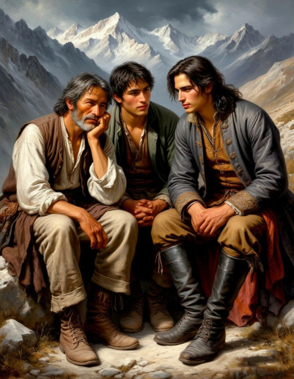 Когда все приготовления закончились, утренний свет уже пробивался через тонкие облака, окрашивая горные пики в бледно-розовые и голубые тона. Холодный ветер трепал края их одежд, но никто не колебался. Они шли вперёд, к своей цели, в щемящую душу неизвестность…
