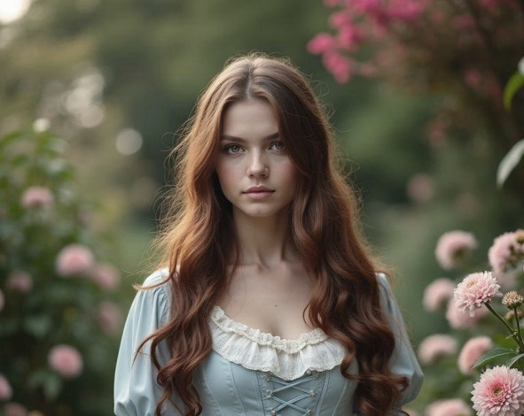 20 июня 1813гИздалека он наблюдал за девушкой семнадцати лет, которая с грацией и усердием ухаживала за своим садом. Её длинные каштановые волосы, собранные в аккуратный хвост, иногда выбивались из ленты и мягко обрамляли юное лицо, словно тень, играющая на солнечном свету. Она подстригала кусты, вырывала сорняки и заботливо ухаживала за деревьями, цветами и декоративными кустарниками, словно в её движениях заключалась древняя тайна.