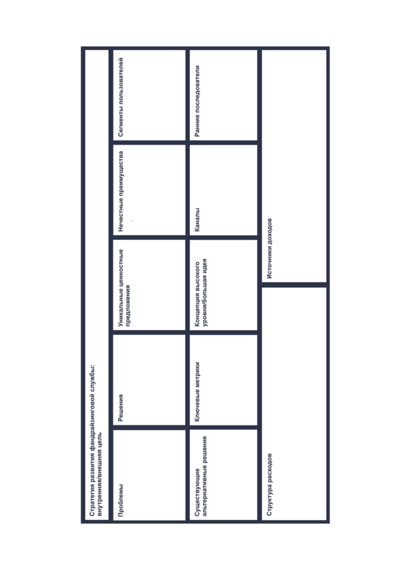 Еще одна ошибка – подходить к заполнению модели не из позиции исследователя, пытаться засунуть в нее уже существующие фандрайзинговые решения и устоявшиеся практики. Вроде так и должно быть, и все встает на свои места. Если вы замечали за собой подобное поведение, пригласите к заполнению Canvas своих коллег или сделайте это с сопровождением вашего ментора.