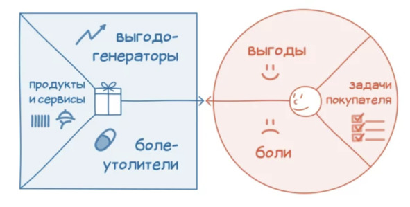 Мы предлагаем вам один рабочий инструмент – это Value Proposition Canvas. Работа по нему в строгом порядке поможет вам определить уникальные ценностные предложения для любого типа аудитории. Давайте рассмотрим, как это работает.