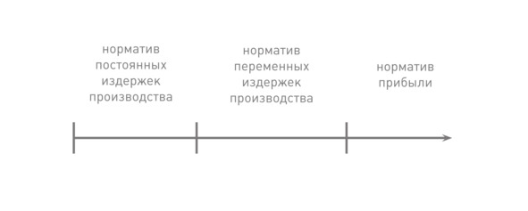 Внутренняя себестоимость планируемого к производству (уже производимого) товара, продукта, услуги представляет собой совокупность норматива постоянных и норматива переменных издержек производства.