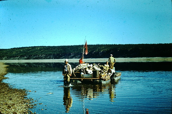 Катер тянет баржу по Витиму. В переднем отсеке баржи грузы, накрытые брезентом, в заднем – натянута палатка шестиместка. Она должна спасать геологов от дождя и холода. Но сейчас над Витимом солнце. Экспедиционные рабочие сидят на носу баржи и на корме, лежат на крыше кубрика, курят, рассматривают в бинокль берега.