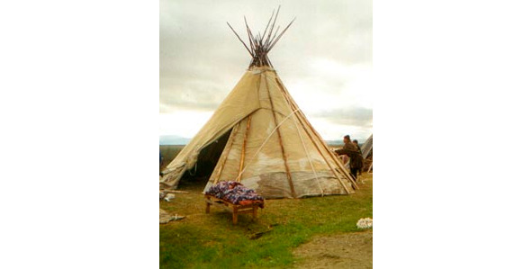 Илларион Петрович Кириллов с хозяйкой ставили шатер. На каркас из тонких стволов берез, срубленных топором только что, так что еще сочился березовый сок, натягивалось неопределенного цвета полотнище с оконцем для трубы в одной из стенок. Под кустами лежали вьючные переметные оленьи сумы, легкие деревянные с замысловатой резьбой седла, а несколько поодаль – олени.