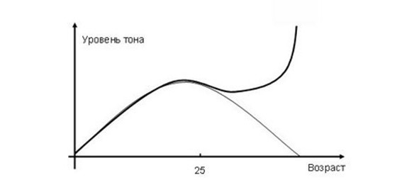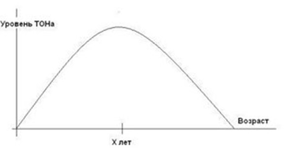 Таким образом, мы уже можем нарисовать первую динамическую модель изменения ТОНа в течение человеческой жизни. Итак, вот она: