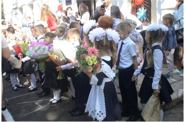 Сняты шлёпанцы и кеды.Календарно – без поблажек,дорогие непоседы,убежало время пляжей,пряток и велосипедов.Удивлённо опустелиперед домом карусели…Видя банты и букеты,двор задумчиво притих.Сентябрём сменилось лето!Наступил серьёзный миграсписания и книг.Дни учебной дисциплиныпеременят ваши планы.Кроме зуммеров мобильныхожидаемы, желанныбудут школьные звонки.Таинством уроки станут…В добрый час! Ученики!У ШКОЛЬНОГО ПОРОГА