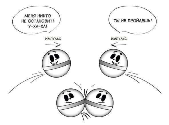 Последнее, что хотел сказать про импульс. Шарики – это, конечно, круто, но если бы он использовался только в бильярдных расчётах, физики бы быстро махнули на него рукой. А так – импульсы есть чуть ли не у всего, что движется. Начиная от тех же тел живых и неживых и заканчивая какими-то трудно представляемыми мелкими частичками типа электронов, фотонов и тому подобных «он» -ов.