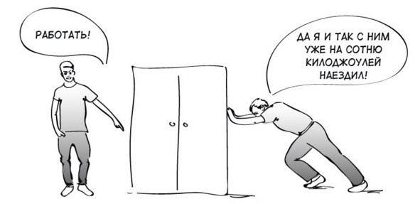 Наконец потихоньку подбираемся к этой непонятной энергии (которую тоже чёрт-те как представишь). Объяснить это замысловатое словечко можно так. Если какое-то тело (или группа тел) может (могут) совершить работу, то говорят, что оно (они) обладает (обладают) энергией. Слово «работа» здесь не просто так. Это в жизни что-то абстрактное, что не волк и в лес не убежит. А в физике это число. Да, работу можно посчитать. Звучит странно, но оно так и есть. Вообще говоря, у работ существует целая куча разновидностей. Но поскольку мы всё ещё в механике, то не буду грузить уймой умных слов, а расскажу только про механическую работу. Тем более, в школьной физике других работ, тьфу-тьфу, на контрольных и прочих работах по механике не дают.