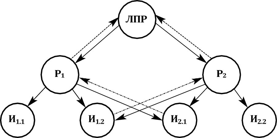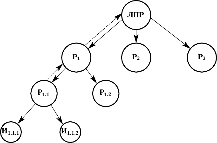 ЛПР – лицо, принимающее решение (первый руководитель); Р – руководитель; И – исполнитель;