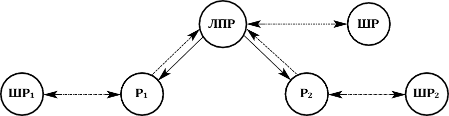 ЛПР – лицо, принимающее решение (первый руководитель); ШР – штаб руководи- теля; Р – руководитель;