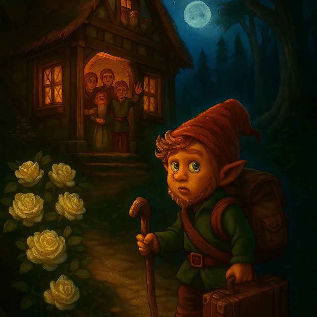 Гном обернулся и еще раз посмотрел на родной домик, утопающий в розах. Он с грустью взглянул на окошко своей комнаты, из которого так часто рассматривал город и мечтал о приключениях, сидя на подоконнике.