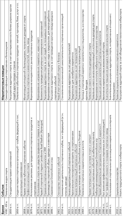Так, по мнению канадского маркетолога Дугласа Идагбау20, спортивный маркетинг существует уже более 130 лет, а Уэйн Блан и Кетра Армстронг из Ithaca College со ссылкой на Бренду Питтс и Дэвида Стотлара21 называют еще более раннюю точку отсчета – 1820-е годы, когда промоутер Уильям Фуллер организовал боксерские поединки в Южной Каролине (США). Блан и Армстронг выделяют три периода развития американского спортивного маркетинга22: