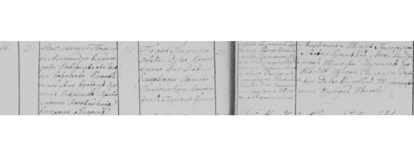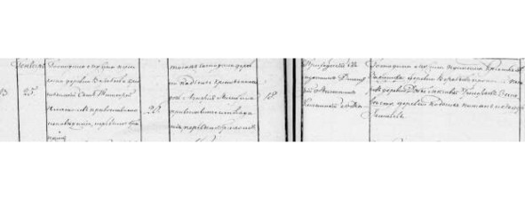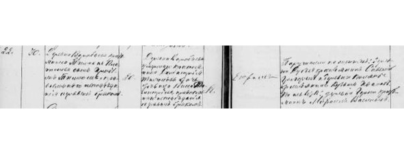 Метрическая книга с. Красного. Январь 1820 г. «№4. Той же вотч. д. Муравики кр. Никита Федоров сочетался зак. браком с той же вотч. д. Подъелья с кр. дочерью девкою Лукерьей Михайловой пер. бр. Оное таинство совершено свящ. Никитой Петровым… 21 [число]. [Свидетели] Той же вотч. д. Поляны со стороны жениха кр. Иван Михайлов, Конон Семенов. Со стороны невесты той же вотч. д. Подъелья кр. Иван Петров.