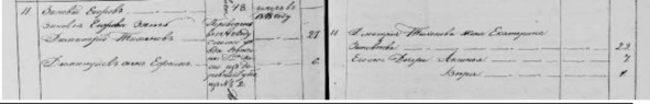 Тихонова жена Екатерина Зиновьева 29. Его же дочери Аксинья 7. Вера 1.»