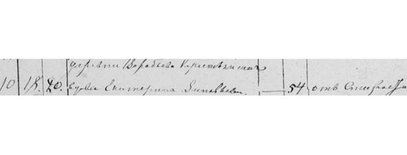 Метрическая книга с. Красного. Май 1828. «10. Г-на Новосильцева сц. Воробьева кр. Яков Никитин. 54. Чахоткою».