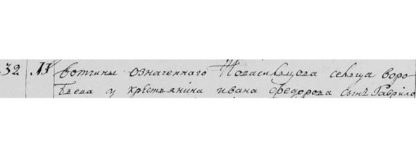 Воробьева у кр. Ивана Федорова сын Гаврило».