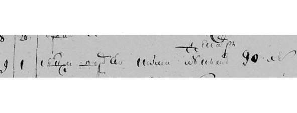 1766 г. «Декабрь. 1. Сц. Воробьева Козма Лукьянов 90 лет».