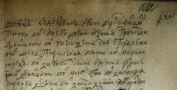 Переписная книга 1678 г. Д. Поляна. «Анофрейко Юрьев у него дети Васка Ларка Давыдко пятнатцати лет Дениско десяти лет».