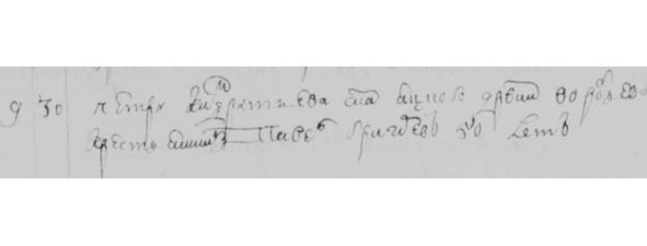1722 г. МК с. Красного. «В октябре. 19. Петра Яцкого сц. Воробьева кр. Иван Тарасов умре».