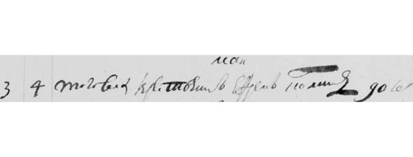 1764 г. «Мая. 4. Того с. кр. Ефрем Козмин 90 лет».