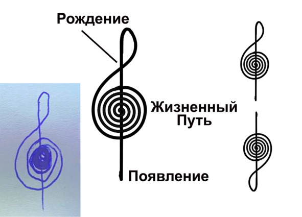 Для использования этого символа, входим в рабочее состояние. Настраиваемся на человека по фото, или на него, сидящего перед нами. Мы уже знаем что собираемся делать – чистить от страхов, или что-то менять в нём. С этим намерением начинаем чертить линию. Ведём её вверх, изгибаем вниз, пересекаем саму себя. Затем переходя к спирали, отпускаем себя позволяя руке чирикать спираль как вздумается в рамках символа. Параллельно прямо в образах закладываем то, что нужно, символически переписывая его жизненный путь. Если человек находится перед нами, можно визуализировать на его фоне этот символ «скрипичного ключа» и водить этим образом по нему, ощущая как производится чистка и трансформация.
