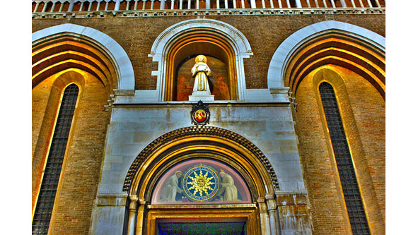 Наиболее известным храмом города является церковь Святого Антония Падуанскаго с ее многочленными капеллами, выходящая на пьяцца дель Санто с медной конной статуей венецианского кондотьера Гаттамелата работы Донателло, 1453 г.