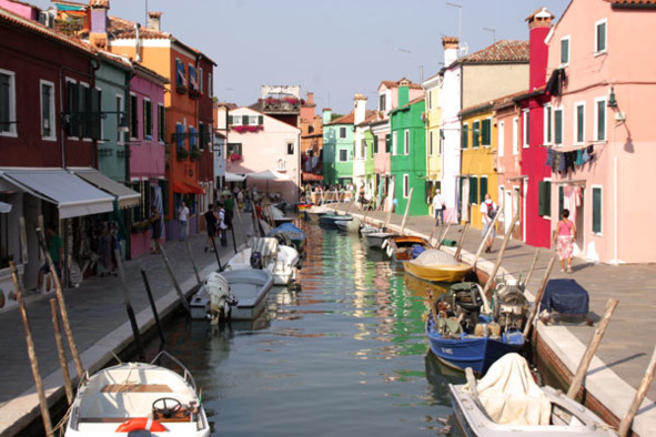 Итак, остров Бурано. Бурано представляет собой архипелаг мелких островов, соединенных каналами и мостиками. Население острова – 5 тыс. жителей, многие из которых, как и их предки, занимаются рыбной ловлей. Когда катер плывет по лагуне, видно несколько брошенных островов – Сан-Джакомо-ин-Палудо (Святого Иакова на Болоте), прежде францисканский монастырь, а в XX веке военная тюрьма и руины монастыря Мадонна-дель-Монте, в XIX веке пороховой склад.