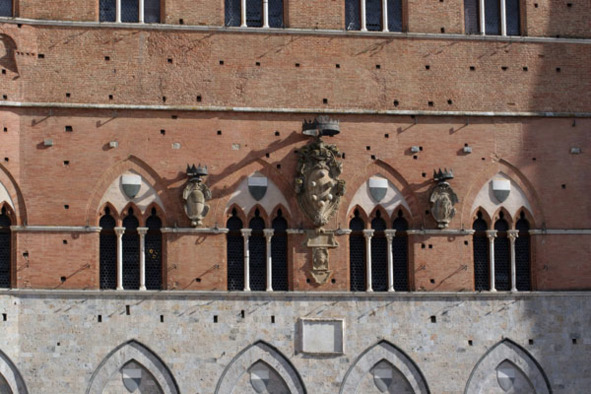 Кстати, герб рода Медичи красуется на фасаде одного из зданий, которое выходит на главную городскую площадь – пьяццо дель Кампо