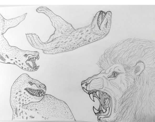 Вдруг из завесы дождя выскочил морской леопард, пытаясь схватить льва за спину своими острыми зубами, но тут уже Лион опередил хищника, подпрыгнув и всем телом оттолкнув леопарда, который напоролся на какой-то острый штырь и, дернувшись, замер навсегда. Лев, весь промокший, зарычал на всю округу, напоминая о своем присутствии. После такого заряда энергии король саванн повернулся в сторону Лиона, ожидая от него дальнейших действий. Дождь немножко утих, шел не такими сильными струями, как последние два часа. Лион понял, что такой дождь был послан с небес. Затем он посмотрел на льва, который стоял весь промокший, и его красивая грива вся свисла, а глаза горели огнем. Он, покачивая головой, звал к себе! Лион посмотрел на него и подумал: