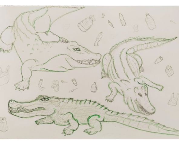 Корабль в это время врезался в отмель. К удивлению, никто не почувствовал сильного толчка во время удара, да и корабль не получил никаких повреждений. Стоял густой утренний туман, но даже сквозь него остров выглядел как-то странно. Растительность на нем практически отсутствовала. Вся команда поднялась на палубу и удивленно рассматривала этот безжизненный остров, который своими габаритами и площадью можно было бы сравнить с самой Францией! Оказывается, он сформировался из отходов, которые накапливались столетиями. Капитан с двумя матросами решил его осмотреть. Почва оказалась устойчивой и плотной, но, не пройдя и десяти метров, вдруг один из матросов с громким криком провалился вниз. Капитан не успел спасти матроса, но разглядел существо, которое схватило его. Это был аллигатор! Рыбаки бросились на помощь, но, к сожалению, не смогли спасти своего товарища из пасти огромного хищника. Капитан развернулся и схватил второго матроса за плечо – тот не увидел приближающегося к нему сзади другого аллигатора! Затем капитан достал пистолет и выпустил по крокодилу всю обойму. Рыбаки всей командой пришли на помощь, но вдруг все стихло! Один из рыбаков подошел к капитану.
