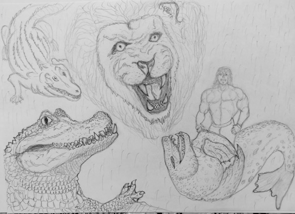 Лион, молясь и прося прощения, чувствовал, что силы возвращаются, но недостаточно, чтобы раскрыть железные челюсти аллигатора, который при этом старался затащить Лиона под воду. Лион, прикладывая все силы, стал кричать, и этот крик больше был похож на рычание льва! Пасть аллигатора стала слабеть, и тогда Лион сквозь бурлящую воду увидел, как лев воткнул свои мощные клыки прямо в лоб крокодила, после чего и ослабла железная пасть, которую Лион смог раскрыть и освободиться.