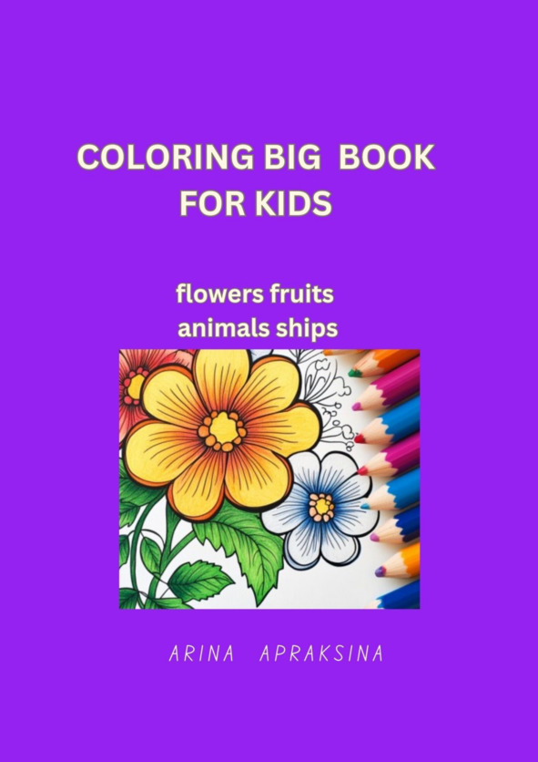 Coloring Big Book for Kids. Flowers, fruites, animals, ships