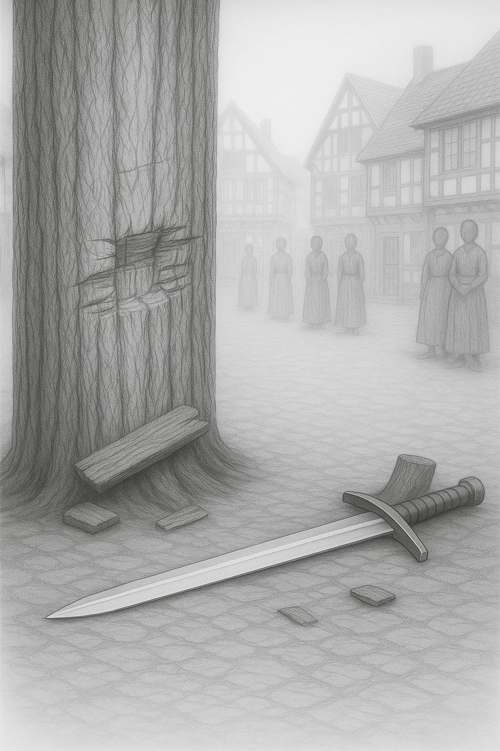 Мальчик вырвался из рук старейшины, глянул на него озлобленно-потерянными глазами и громко выскочил из чулана. Его сердце бешено стучало, разрываясь на куски. Пробежав мимо отца, он выбежал из ратуши и изо всех ног помчался в сторону дома. Его ступни горели, а глаза, наполненные горькими слезами, едва видели дорогу. Та боль в груди, почти уснувшая за четыре года, пробудилась с новой силой, царапая и разрывая мальчика изнутри. Он вновь потерял ту, которая, как никто другой любила его. Руки мальчика тряслись, а губы и горло пересохли. Он не мог поверить в то, что Лиры больше нет. Ворвавшись в дом, Тэлиас крепко вцепился в подарок отца и с криком выдернул меч из красного дерева. Посмотрев на серебреный клинок, мальчик вытер пот со лба рукавом и рванул обратно к площади. Через минуту он уже стоял у злополучного столба таверны, с которого упала Лира. Маленькие дощечки, прибитые к деревянной колоне, безвинно смотрели в сторону и только сейчас Тэлиас заметил, что одна из них покорно лежит у основания столба. Именно она, предательски не выдержала и отломилась, лишив Лиру жизни.