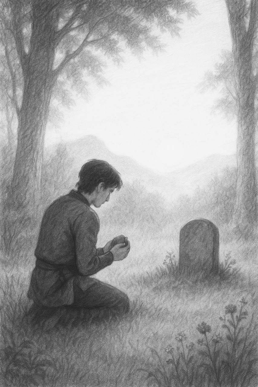 – Я скоро вернусь. – прошептал юноша, поглаживая серый камень.